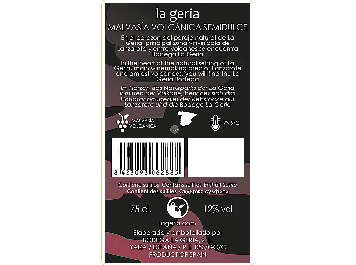 La uva Malvasía Volcánica, que se encuentra en laderas y valles de los volcanes, se vendimia manualmente una vez tenga la madurez deseada. Se realiza una selección rigurosa de la uva de calidad y posteriormente, una maceración pre-fermentativa con el fin de extraer la mayor cantidad de aromas varietales posibles.